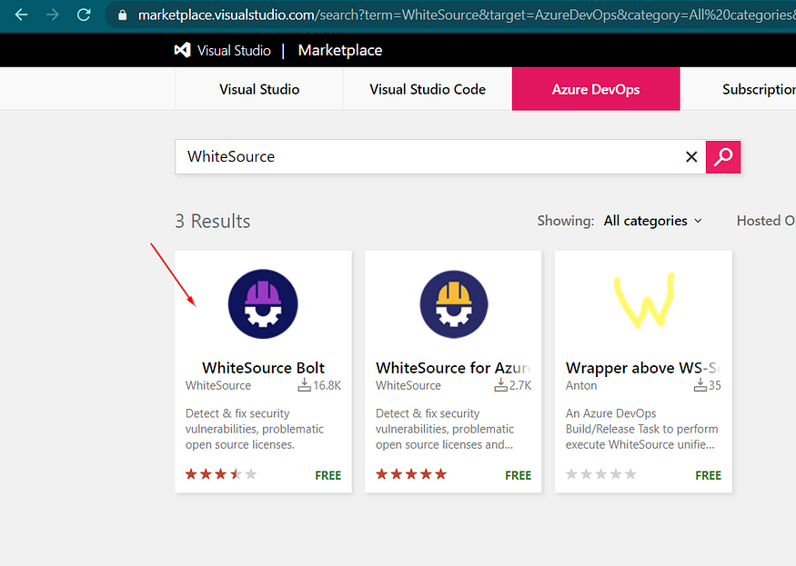 WhiteSource Bolt is part of the WhiteSource security suite, which has been specifically developed to integrate with Azure DevOps, Azure DevOps Server, and GitHub Actions. Bolt works seamlessly in the continuous integration (CI) phase by scanning all the libraries used in the application source code and generating a detailed summary of libraries with security flaws, and lists the licenses being consumed. There is a free WhiteSource Bolt extension available for Azure DevOps Marketplace, which gives you 5 scans per day. We have used this version for the illustration. Bolt can be installed from Azure DevOps Marketplace.